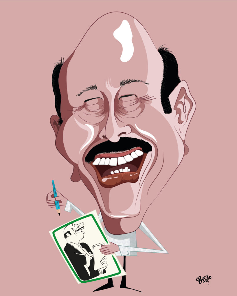 Foi ao ver, no livro que ele segura no desenho, uma caricatura de Milton Nascimento feita por ele que pensei: “vou aprender a desenhar caricatura” – e sigo aprendendo até hoje.